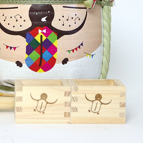 人を喜ばす事が大好きなキャラクターで、菰樽(こもだる)を口元に持っていくと…「犬の口」に大変身!みんなで写真を撮って、笑顔あふれるパーティに。
