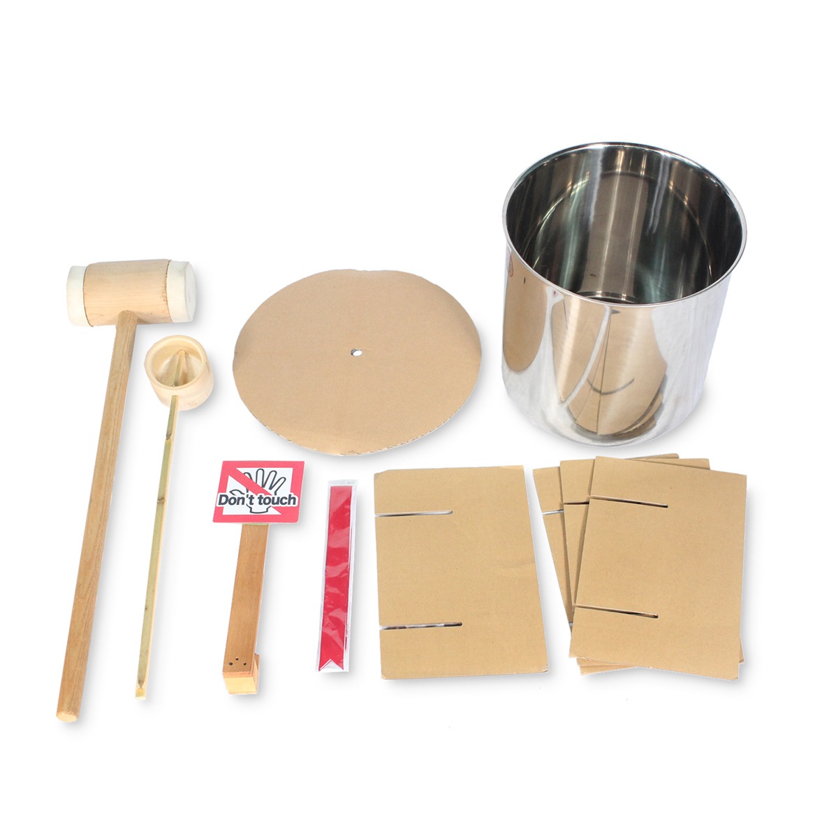 付属の使用説明書をご覧いただきクラッカーをセッティングしたら、あとは木槌で叩くだけ。