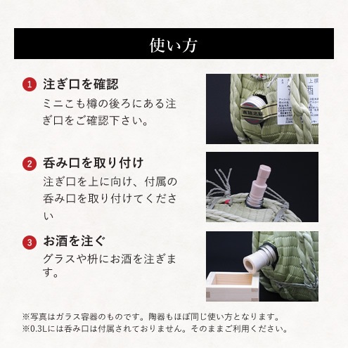 ※販売するこも樽の中はガラスビンとなっており、鏡開きをすることはできません。あらかじめご了承願います。