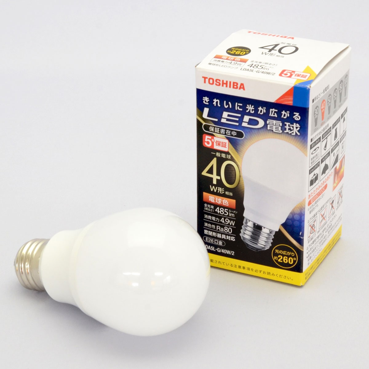 電球:E26 電球型LEDランプ LDA5L-G40W2(東芝製)